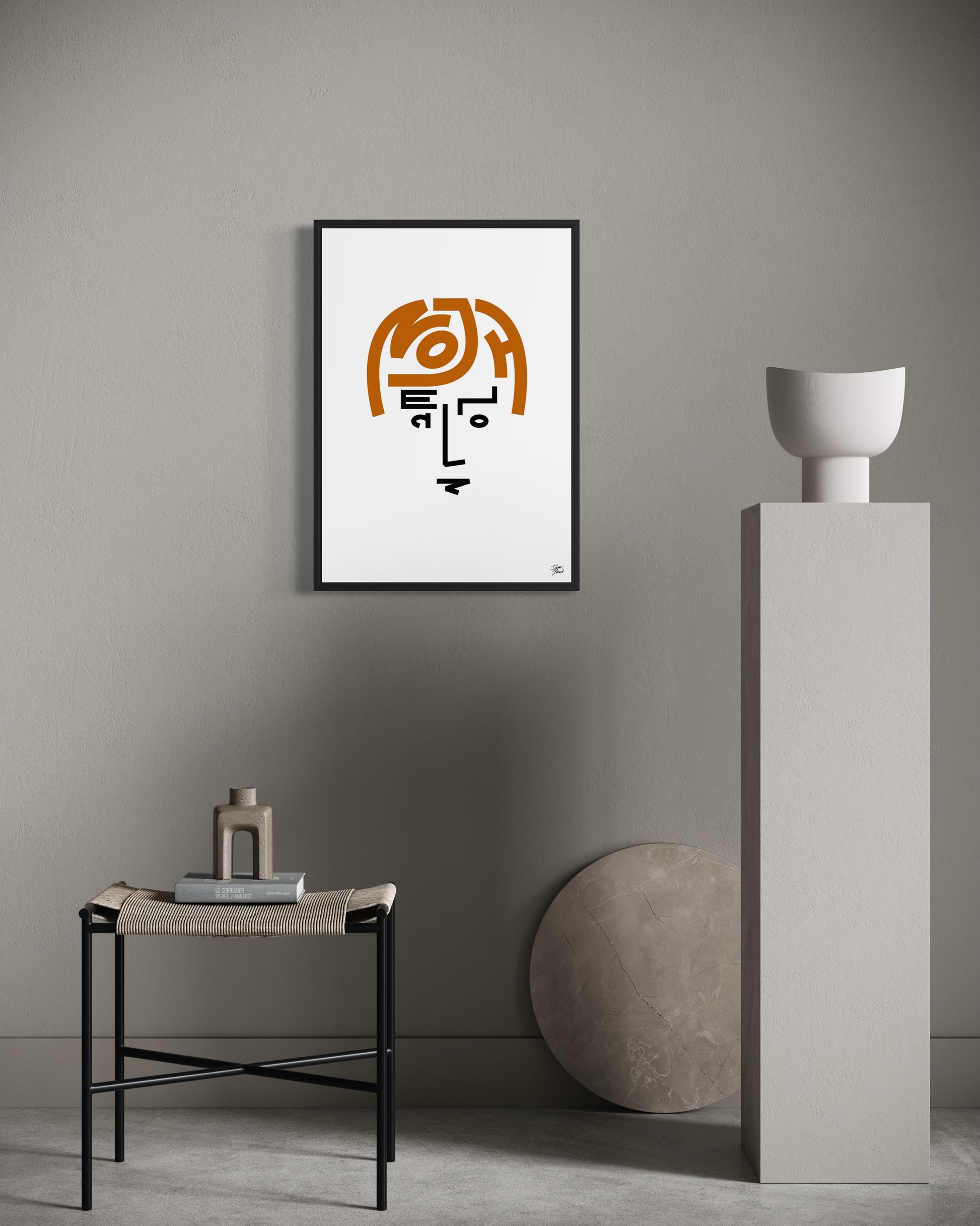 The portrait is constructed entirely from letterforms taken from the artist’s name, arranged to form an abstract, expressive composition rather than a literal likeness. The result is a contemporary visual interpretation that sits between typography, portraiture, and music-inspired art.