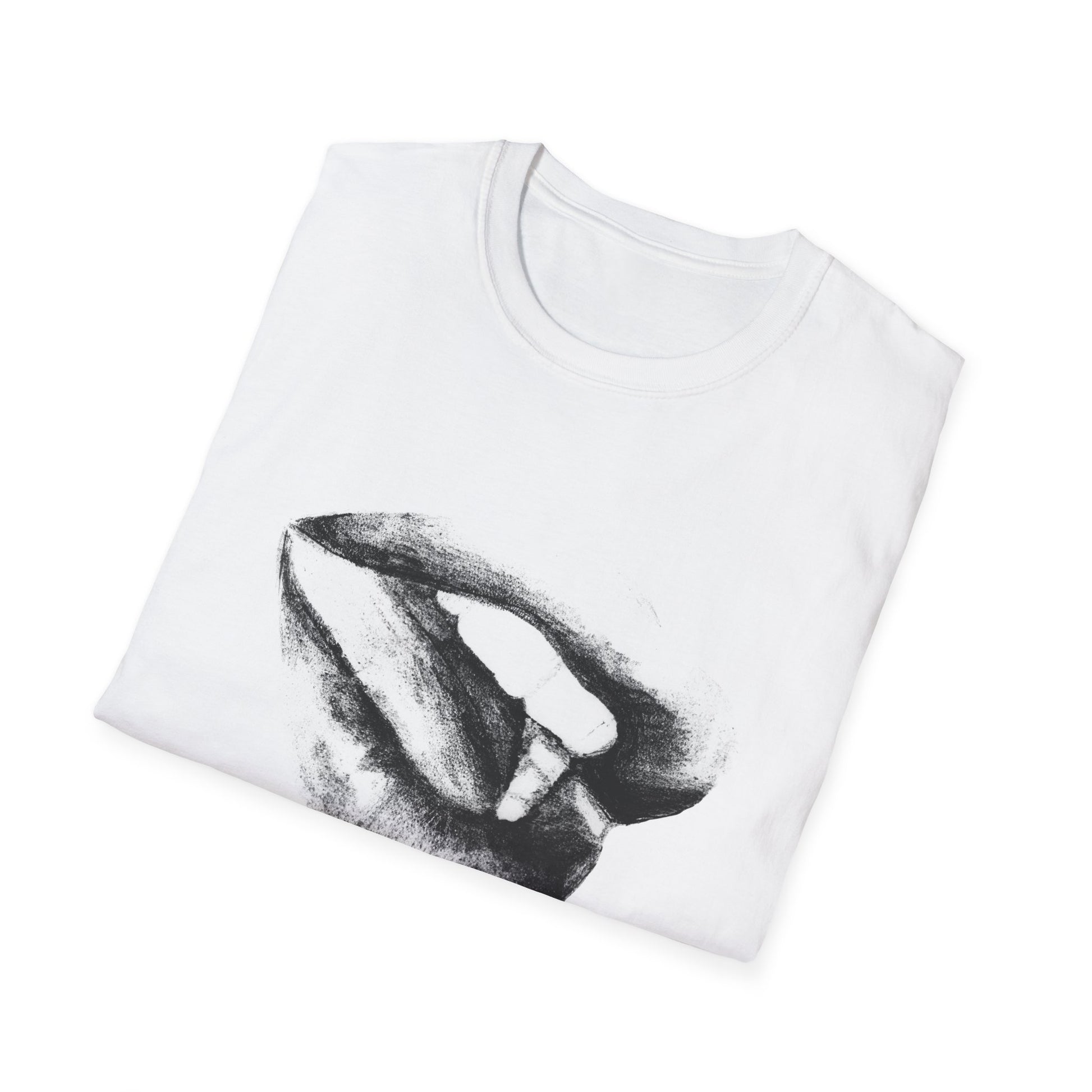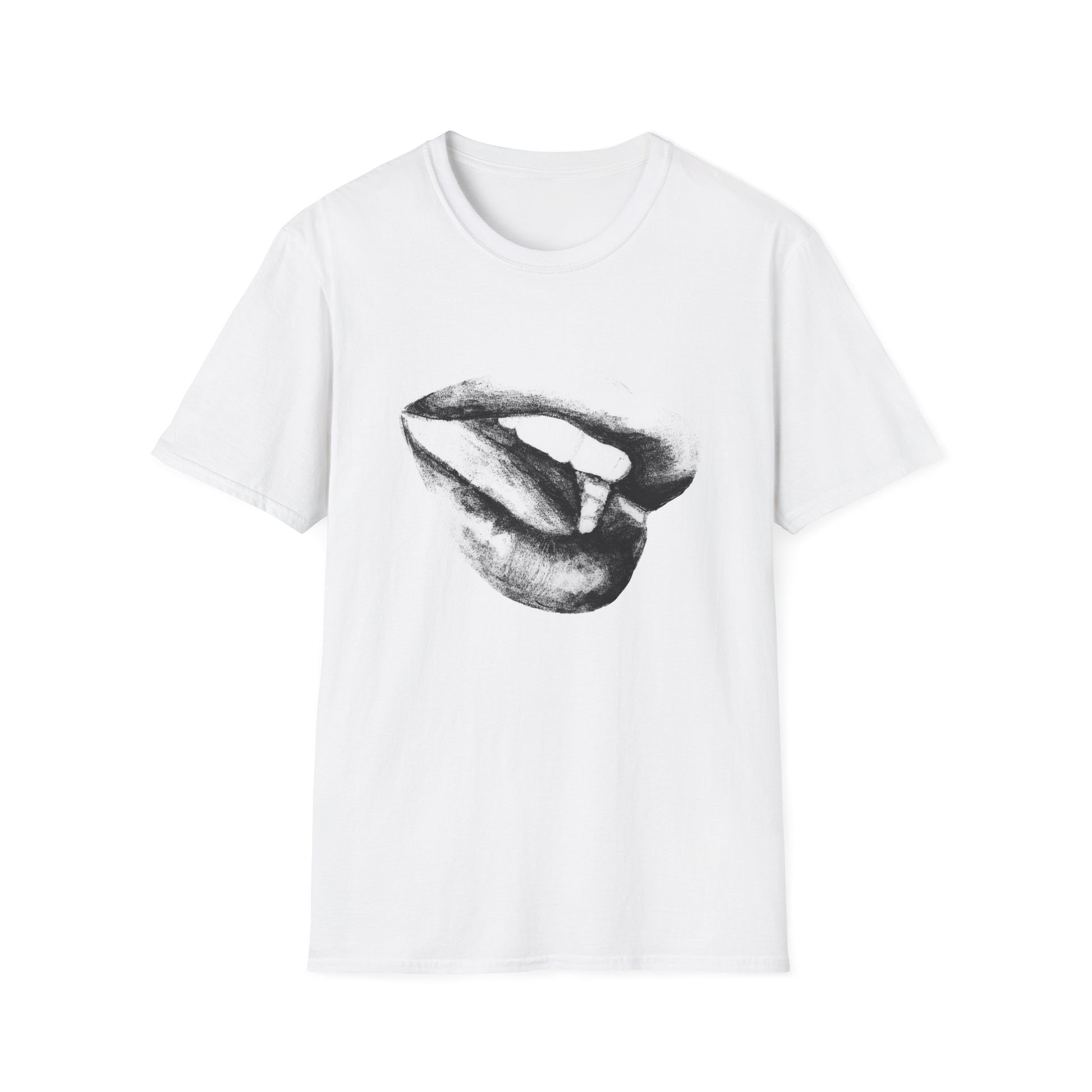 A soft and comfortable unisex T-Shirt featuring a pencil drawing of a woman's lips. Perfect for those looking for a unique and artistic touch to their wardrobe. Ideal for adults and can be worn for casual or semi-formal occasions. Great for gifting on birthdays, Valentine's Day, or special celebrations.
